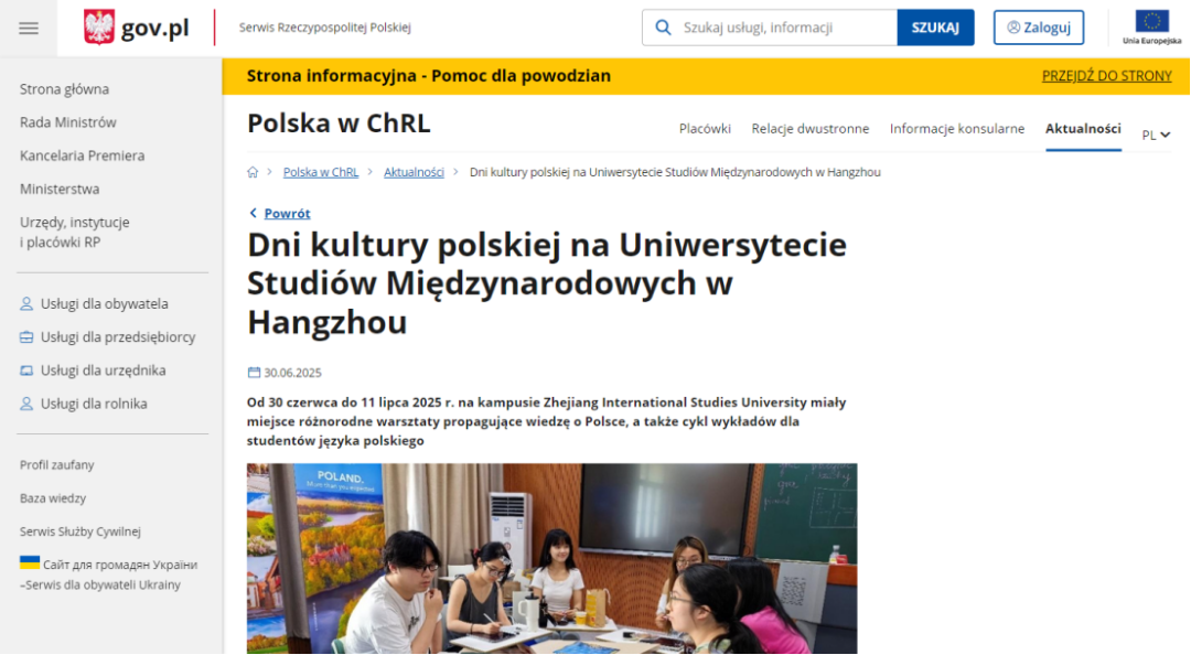 6月30日,波兰共和国政府官网对我院波兰语专业开展的波兰文化艺术“小学期”专题活动进行了报道,并给予高度认可。