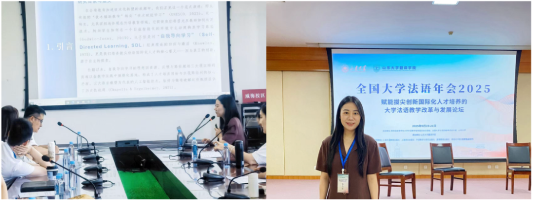 9月20日,我院法语系主任徐曼受邀出席于山东大学(威海)举办的“2025全国大学法语年会”,并就“人工智能赋能法语自主学习的实证研究”作交流。