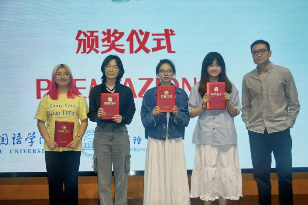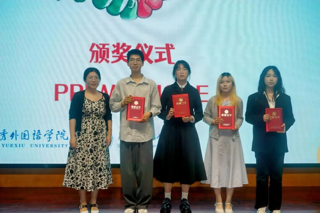 经过激烈角逐,我院22意语1班龙文星获一等奖,23意语1班匡媛媛、23意语中外2班顾禾玢获二等奖,22意语1班沈若桐、24意语1班查原犊获三等奖。