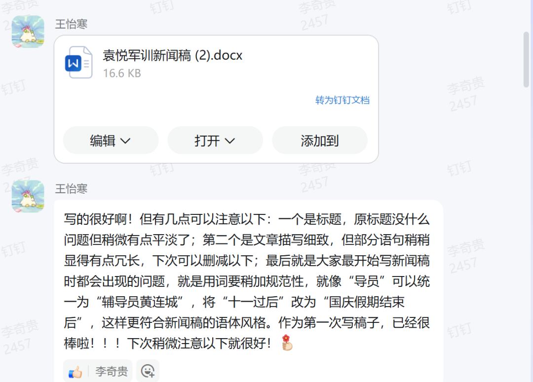 摄影部干事蔡韩依对此深有同感:“加入新闻中心后,我才真正认识到我记录的已经不只是我的生活,而是学院以及学校的大事年表。”从记录者到传播者,她学会了用耐心和专注去发现美好、传递温度。初入中心时连光圈和快门配合都生疏的她,在部长温柔的鼓励下逐渐成长,“这段用镜头记录时光的日子,是我大学生涯中最珍贵的礼物之一。”