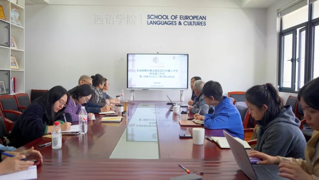 会上,德语系教师王佳懿、科研秘书程静汇报了《理解当代浙江(德语)》教材的试用情况。调研数据显示,学生对教材的家国情怀主题与区域文化内容表现出浓厚兴趣,试用反馈积极,为教材的后续优化提供了宝贵的一手资料。院长助理、俄语系教师劳灵珊,葡语系教师沈璐,西文所教师马玉静分别汇报了相关语种分册的编写进度与设计特色。